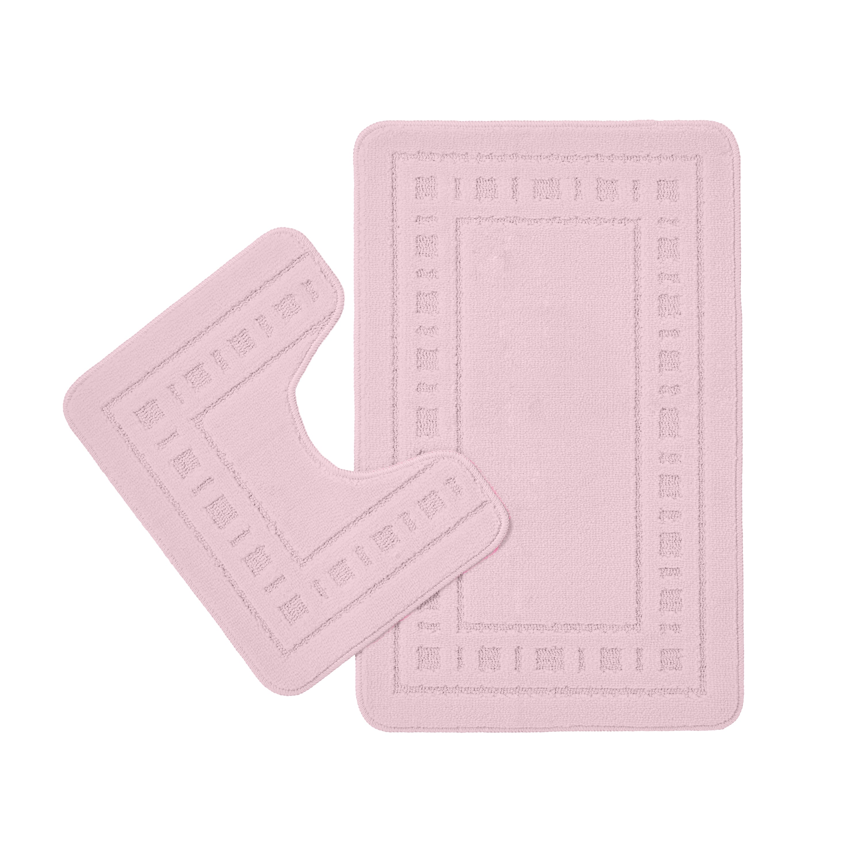 A stylish addition to any bathroom. Bring comfort to your room with this soft pile bath mat and pedestal mat set.