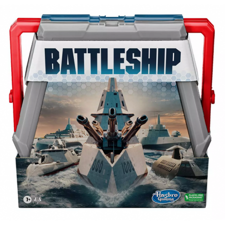 This Battleship board game is the classic game of naval combat that brings together competition, strategy, and excitement! In head-to-head battle, 2 players search for the enemy's fleet of ships and destroys them one by one. With convenient portable battle cases and realistic looking naval crafts, the Battleship game puts players right in the middle of the action. Players command a powerful fleet that includes an aircraft carrier, a destroyer, a submarine, a patrol boat, and a battleship. Each player announces the coordinates of each strike and sees if it hits. Position ships strategically to survive an opponent's relentless strikes, and track hits and misses with red and white pegs on the ocean grid. No ship is safe in this game of stealth and suspense. It's a fun indoor activity for kids ages 7 and up, and it's easy to pack up and take on the go. Hasbro Gaming and all related trademarks and logos are trademarks of Hasbro, Inc.