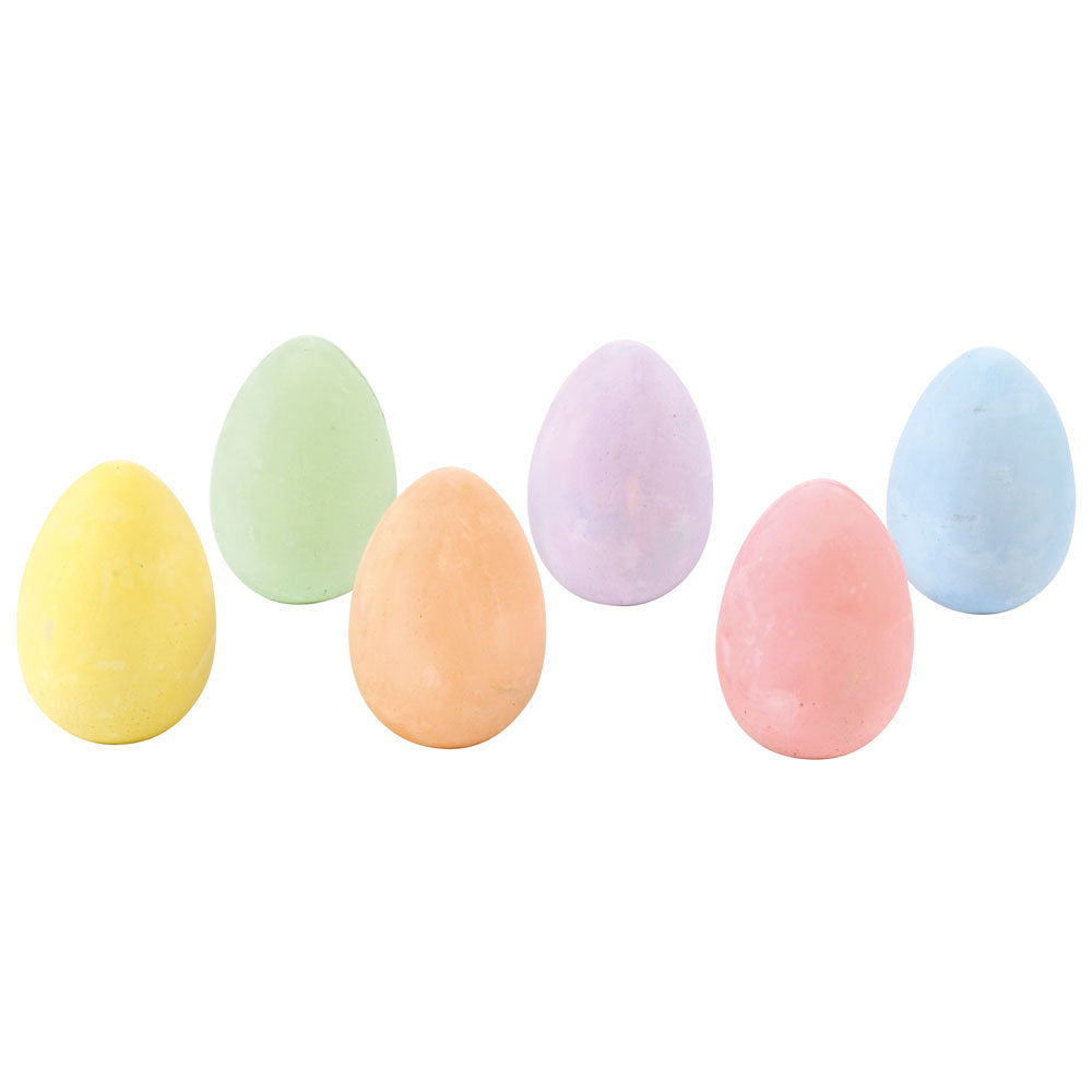 6x egg-shaped chalksYellow, green, orange, pink, purple and blue pastel shades