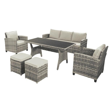 - 3 Seater Sofa, 2 Armchairs, 2 Ottomans with Polywood Table