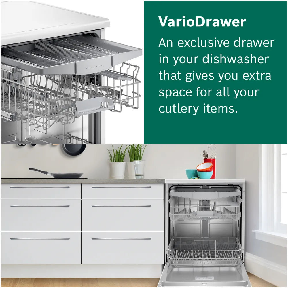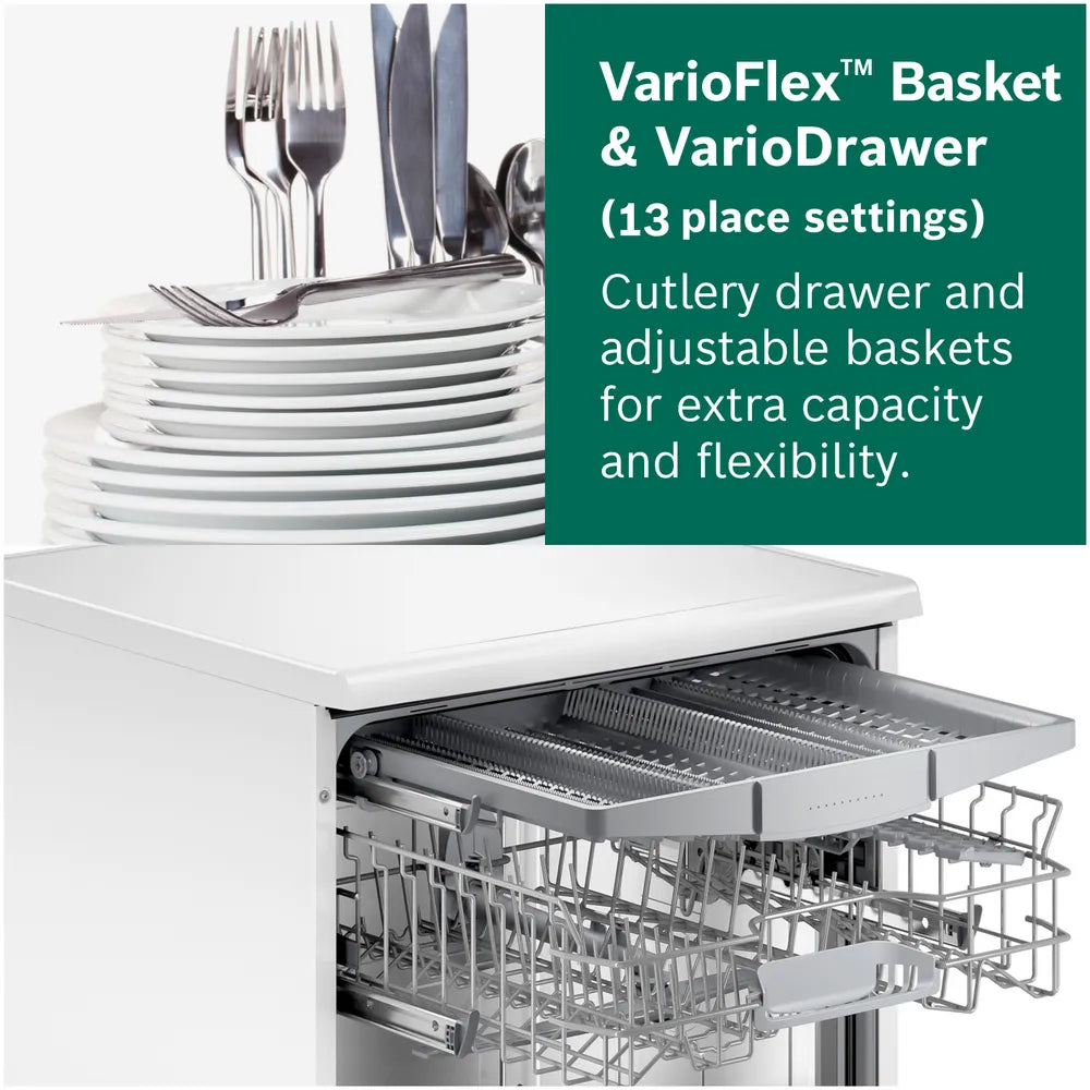 With space for 13 place settings, the Bosch SMS2HVW66G is ideal for households with 3 or 4 people. It has adjustable racking and an extra VarioDrawer at the top, so you can easily create room for dishes, pans and utensils of all sizes.