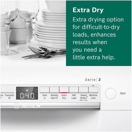 With the ExtraDry function you can say goodbye to finishing the job with a tea towel. Even difficult-to-dry items like plastic cups and boxes will come out dry and ready to use.