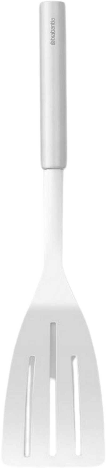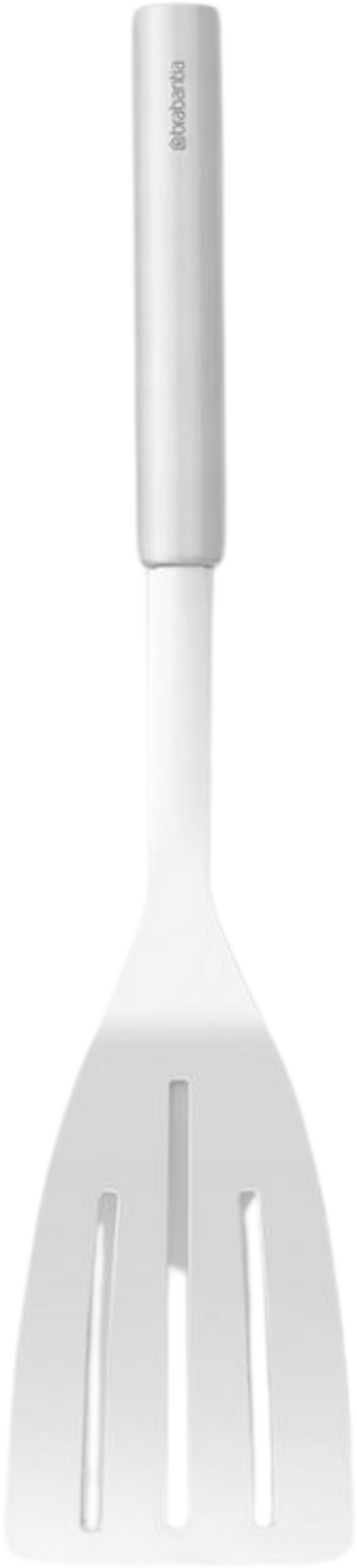 Eggs, meat, oven dishes… Flip them and serve them with this Large Brabantia Spatula. A large and sturdy spatula with smart slots through which fat can easily run off. A flipping good kitchen helper!