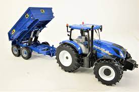 Build your Britains farm from scratch with this exciting New Holland T6 Tractor with Trailer playset, or add it to your existing collection. The Britains New Holland T6.175 DYNAMIC COMMAND Tractor is a farmer's best friend, designed to tuck into the toughest tasks. Superbly detailed, this tractor has big tread tyres and working steering wheel. Attached to the back is the popular NC Dumper Trailer to transport your loads around the farm. This Britains playset features a power tilt tail door, sprung drawbar and a rear door that opens and closes by cross member and is compatible with Britains 1:32 scale machinery and accessories. Made of die cast metal and durable precision-moulded plastic. Build your toy farm world with our entire range of tractors, vehicles, implements and accessories. Suitable for kids and collectors aged 3 years and up.