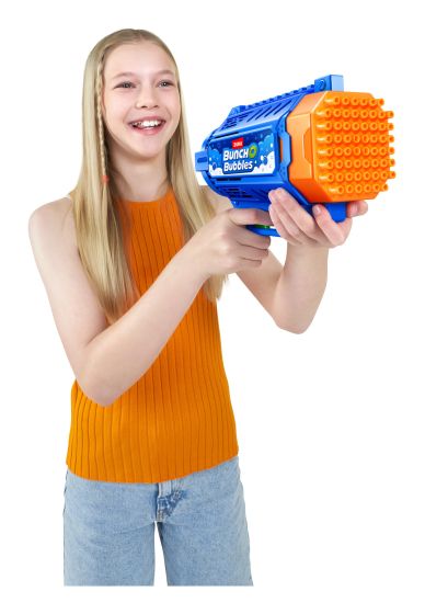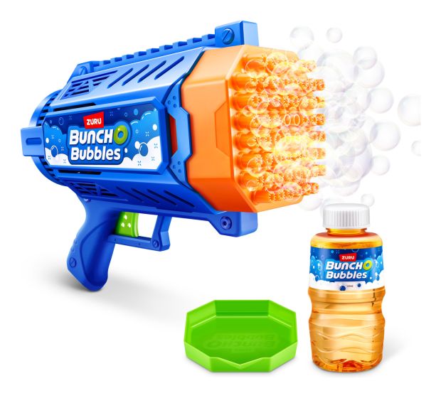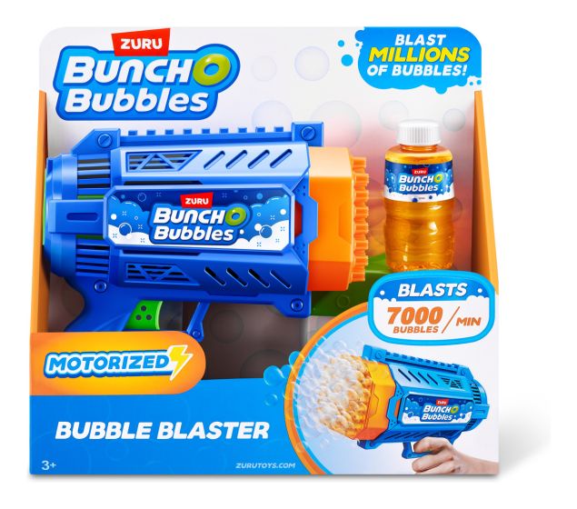 Blast millions of bubbles with the Bunch O Bubbles Motorized Bubble Blaster! With its easy-to-use trigger and lightweight design, this motorized Bubble Blaster is perfect for outdoor play and parties. The Blaster comes with 125 ml of bubble solution, just pour the solution into the dip tray and dip the Bubble Blaster to get the party started! Blasting 7000 bubbles per minute, this Bubble Blaster provides hours of entertainment, no blowing required.