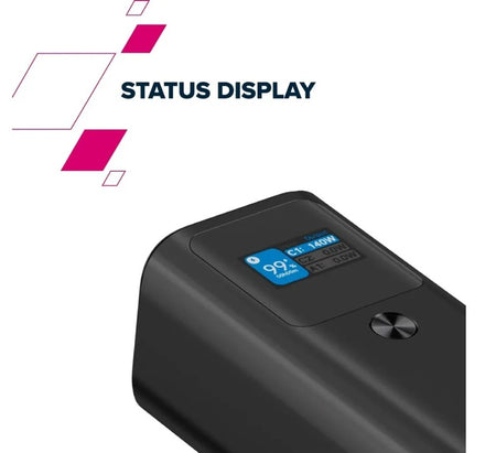 An informative TFT status display gives you comprehensive data on the charging modes and ports in use, as well as the remaining power.