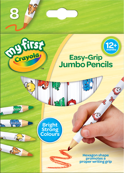 My First Crayola Easy Grip pencils are solid colours in a fun, easy-to-grip shape! These whimsical art tools are designed especially for little hands and full of colour, made to outlast toddlerhood! Includes an assortment of 8 pencils in different colours.