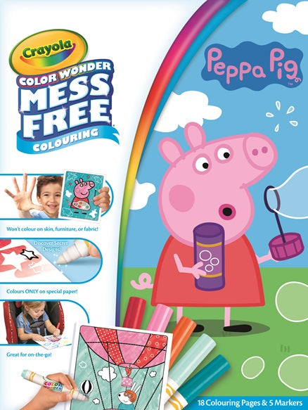 Magically mess-free colouring adventures with Peppa Pig! Color Wonder products are non-toxic and won’t colour on skin, furniture or carpets! The special ink in Color Wonder Markers is clear on most surfaces, yet each marker 'magically' shows up a different colour on Color Wonder Paper. Select your colour, start colouring and discover all the hidden designs as colours magically appear on the page!