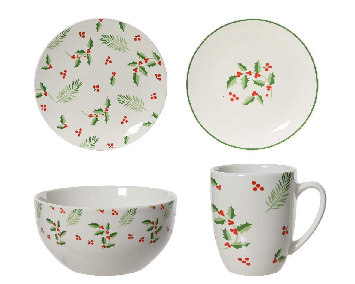 Dinner Set of 16 Porcelain Decal Leaf and Berry Pattern