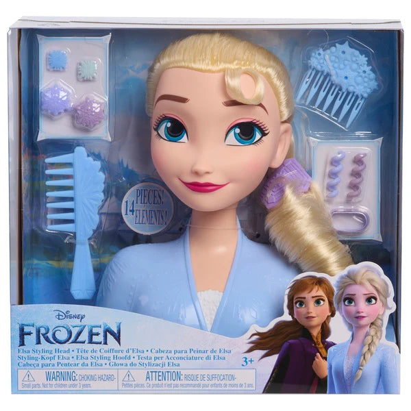 - Disney Frozen Deluxe Elsa Styling Head features with long blonde hair in her iconic braid.