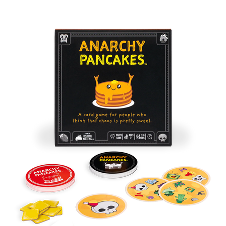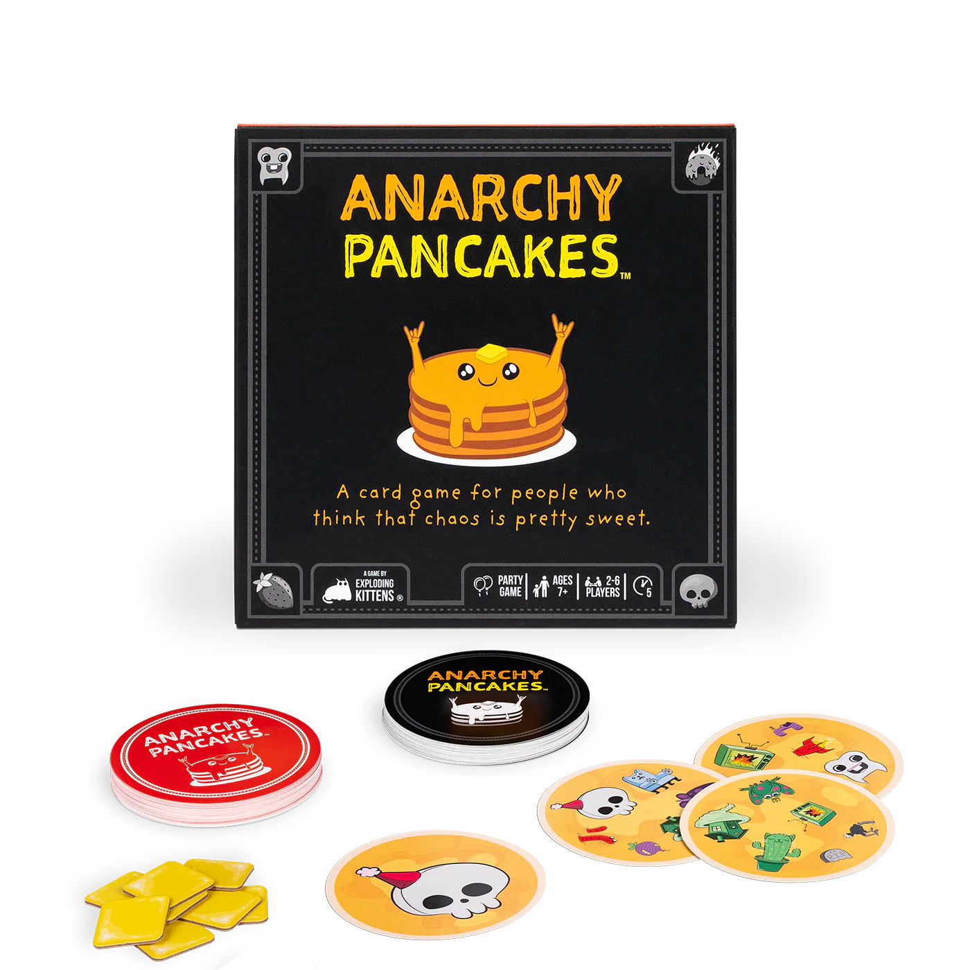 A card game for people who think that chaos is pretty sweet. In this frantic, fast-paced game, you all get a bunch of pancake cards with misfit toppings. Match your toppings with other players' toppings to force them to take your pancakes. Everyone should be working to do this as fast as they can at the same time. The first player to dump all their pancakes wins. It's 100% pure mayhem.