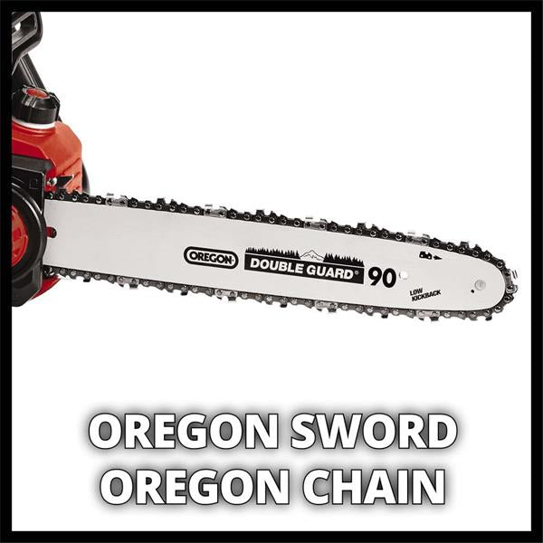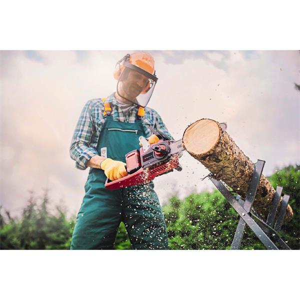 The Einhell Cordless Chain Saw provides power and flexibility. This saw has an OREGON guide bar and chain and a bar length of 350mm and a cutting speed of 15m/s, so it cuts through larger trunks. For safety, there is a claw stop kickback protection, instant-reaction chain brake and a chain catch bolt. Battery and charger are supplied separately. Requires 2x 18V Einhell Power X-Change batteries.
