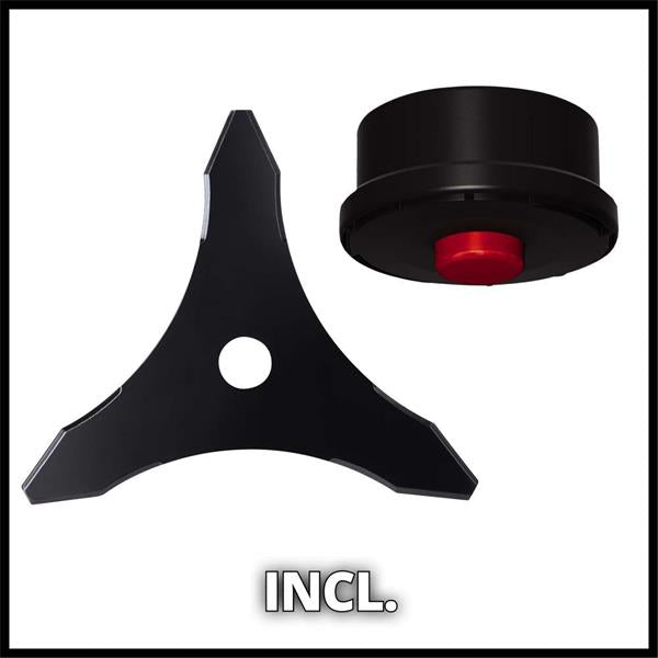 Delivers outstanding mowing results, equipped with the Einhell brushless motor it is secure to hold thanks to the adjustable two-hand handle. The speed is controlled electronically. The high quality 3-tooth blade gets the job done. There is a spindle lock system for changing the cutter set with ease. There is a split shaft for easy transport and space-saving storage. Batteries and charger are supplied separately. Requires 2x18V Einhell Power X-Change batteries.