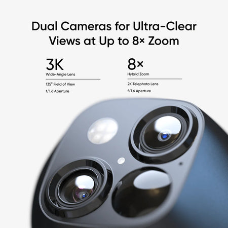- Enhanced Dual-Camera Clarity at 50 Feet: Capture every event that occurs around your home in ultra-clear 3K resolution. See exactly who is approaching your home with 8× zoom.