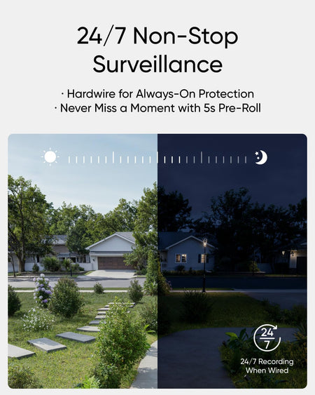 Get 24/7 Protection with Hardwire Power: For uninterrupted security, hardwire the doorbell to your existing doorbell wiring. This ensures you never have to worry about power outages and enables continuous 24/7 recording and 5-second pre-roll for motion-activated events, providing constant protection.
