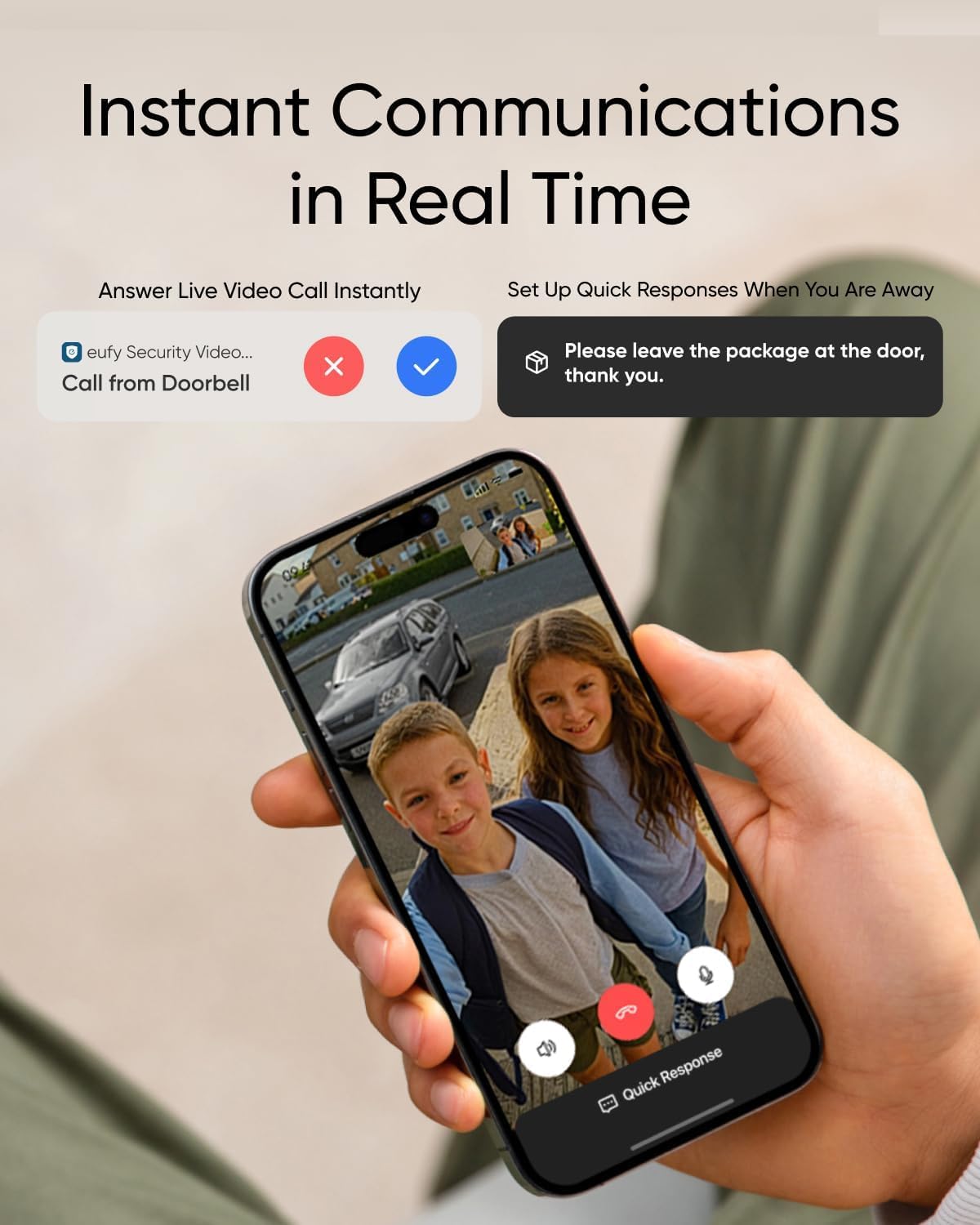 Real-Time Chat, Seamless Experience: Stay connected with your visitors instantly. When someone rings the doorbell, a pop-up video call appears on your phone, providing a live preview. If you're not home, you can set up quick responses and ask visitors to leave voice messages, ensuring you stay informed.