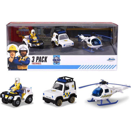 This gift from Jada Toys includes 3 vehicles from the Fireman Sam series and allows young fans to drive around Pontypandy in their favorite vehicles. The 3 vehicles include Police Mercury with figure, Police 4x4 and Police Wallaby. All vehicles have rotating wheels and are made of robust die-cast metal. Whether as a standalone toy or an addition to other toy sets in the series, the vehicles are guaranteed to provide hours of fun. Experience the excitement that Fireman Sam and his friends bring to young children!