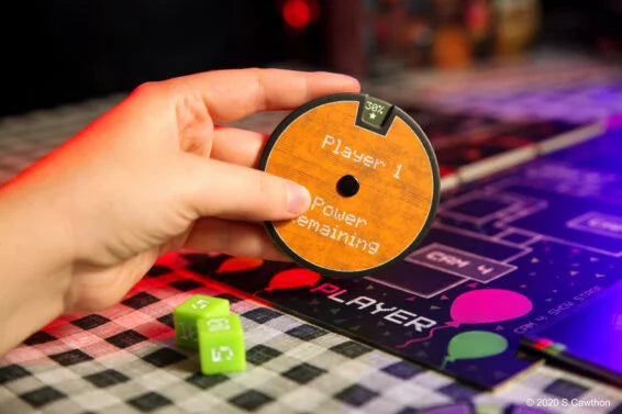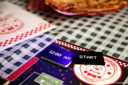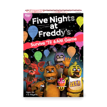 Play with Freddy, Chica, Foxy, Bonnie, and more animatronic characters from the Five Nights at Freddy’s video game franchise and survive the night! You are the night shift security guard for a Freddy Fazbear’s Pizza, and it is your duty to check the security cameras and keep the equipment in good, working order…. and beware the animatronics that activate on their own at night! Each turn you’ll check the cameras and react to the movements in the dark. Choose to turn on the lights or close doors to protect yourself—but watch out! Each reaction depletes your limited power. Keep Freddy and his friends out of your office until you can clock off at 6:00 am!