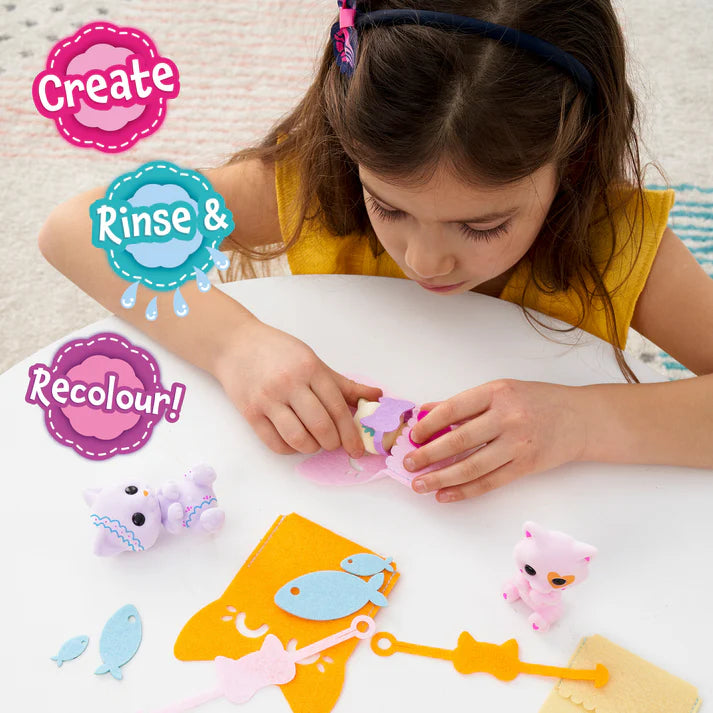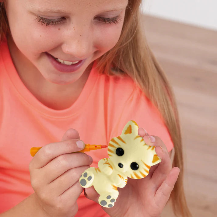 • CREATE, RINSE & RECOLOUR: Fuzzikins are adorable, flocked creatures! Colour the cats with the pens to create unique designs, then rinse to start again!