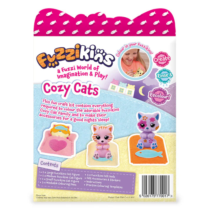 PERFECT CRAFTY PETS: Fuzzikins Cozy Cats is full of feline friends that little ones will love to colour in and make their own! It's bedtime for these three adorable cats in this set.