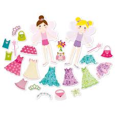 Design fun fairy outfits with this magnetic dressing up kit. Place the clothes, tiaras and magic wands on the fairies and the magnetic surfaces keep them in place. A fun and creative activity! Contents: 2 magnetic fairy dolls, 22 magnetic items of clothing and accessories.