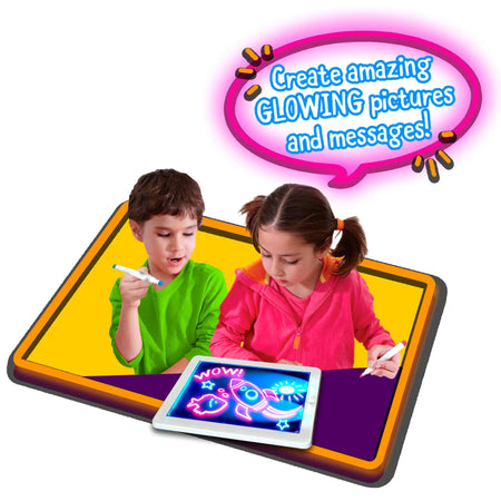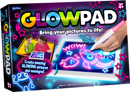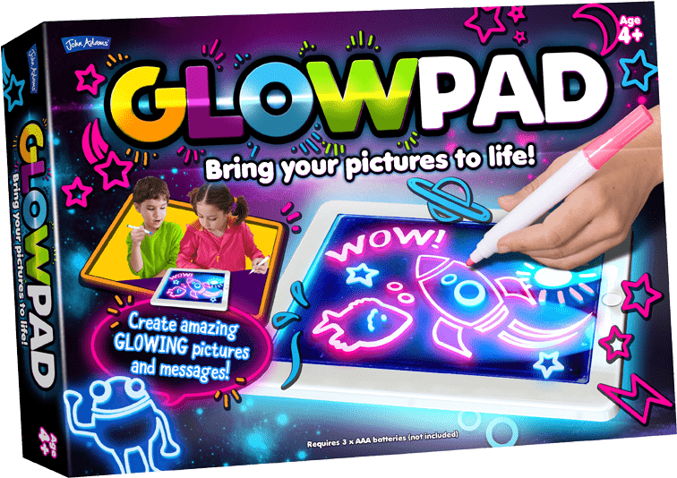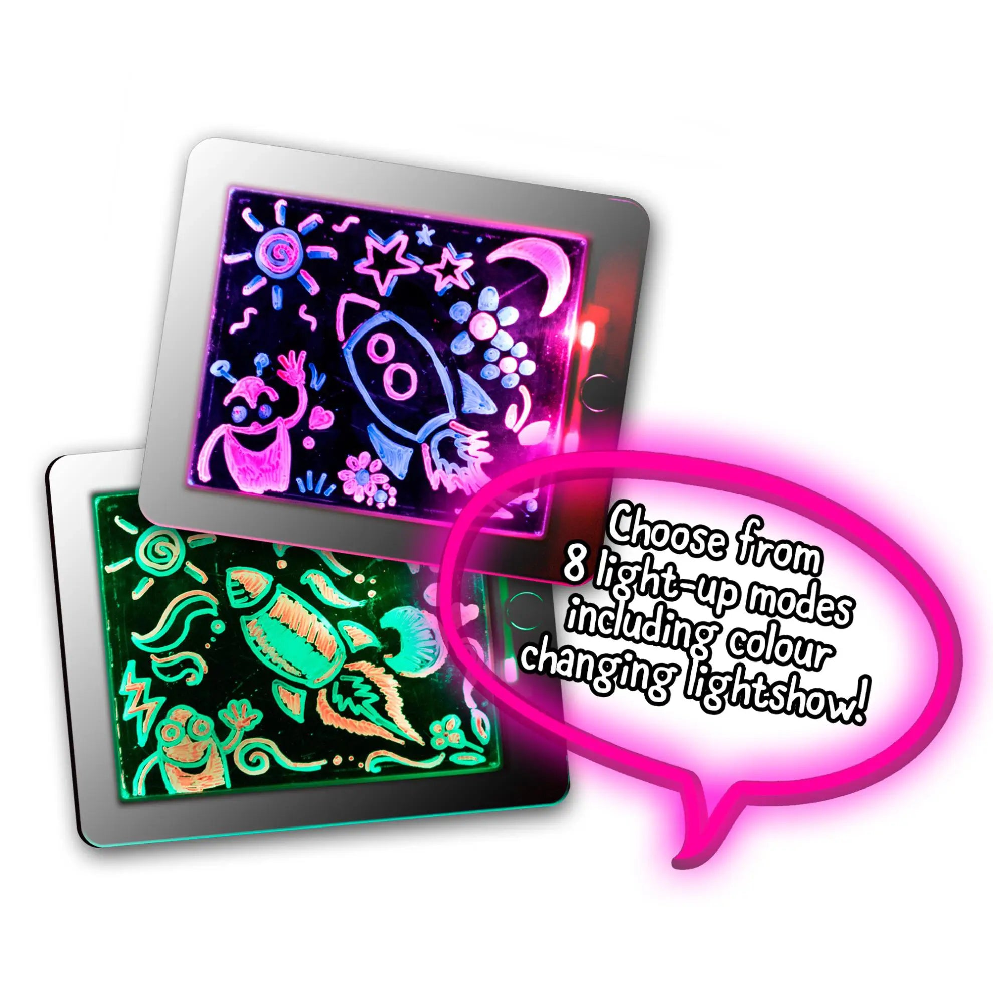 Draw onto your GLOWPAD using the two neon marker pens, then switch on to see your pictures glow and transform! Simply wipe clean and start again if you want a new doodle to illuminate. Comes with 8 light settings including a colour change light show.