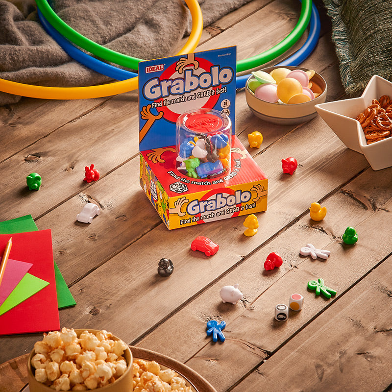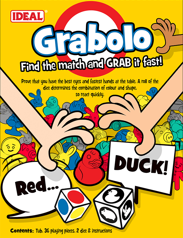 Prove that you have the best eyes and fastest hands at the table to succeed at Grabolo! A roll of the dice determines the combination of colour and shape playing pieces that you have to grab, so react quickly.
