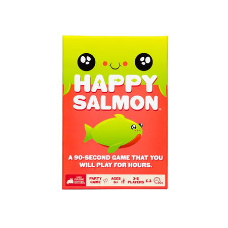 HAPPY SALMON IS A FAST-PACED CARD GAME THAT GETS EVERYONE MOVING AND LAUGHING IN UNDER TWO MINUTES.
