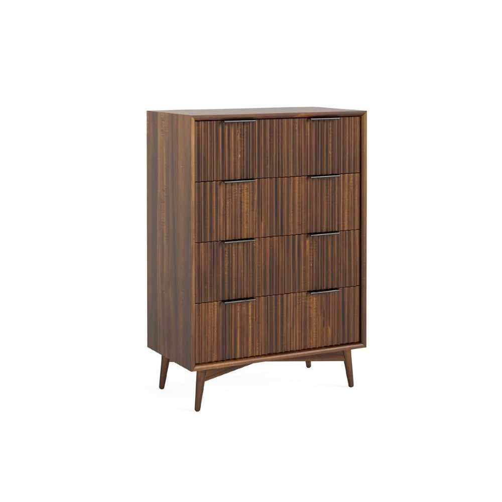 The Harley Bedroom Collection is an elegant and stylish range with a vertically slatted front design reminiscent of the 70’s, giving it a unique modern twist. It has a rich walnut stain finish. The range has streamline black metal handles to complement the walnut finish
