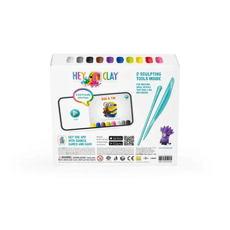 High-quality clay and interactive app for molding 6 Minion figurinesEncourages fine motor skills, spatial reasoning, creativityA kid-friendly introduction to professional clay-molding techniquesInteractive app provides intuitive, step-by-step instructionsCreate 6 Minions - Bob & Tim, Kevin, Stuart, Dave & Fluffy, Otto, evil MinionClay dries and hardens when left out for 24 hours - Display or play with your new Minion friends!Includes 15 cans of clay in a variety of colors (mostly yellow), 2 sculpting toolsCode for access to exclusive material on the app includedApp can be used on multiple devices (tablets and/or phones) with the same IDClay is nontoxic, wheat and gluten-free, nut-free, latex-free, won't stick to handsApp available at the Apple App Store and Google PlaySafe for ages 3+, ideal for ages 6+