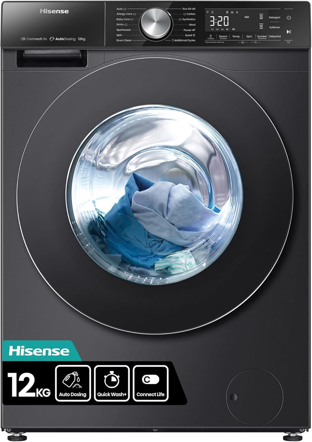 Doing the laundry is a chore, but it doesn't have to be difficult. This Hisense washing machine's Auto Dosing adds just the right amount of detergent to the wash to reduce waste. It can even store up to 24 loads worth of suds at one time, so you won't have to top it up again for a month. Your big night out is here but your favourite shirt is dirty. Luckily, the Quick Wash cycle will have a 1 kg load clean in just 15 minutes, so it's perfect when time's not on your side. And if you've got clothes that just need freshening up, use the Allergy Steam programs. Steam helps to remove odours and bacteria lingering in your clothes, as well as keeping them soft and less creased.