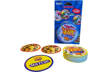 Flip the cards to find a pair. Shout "MATCH!" out loud! I SPY Flip & Find is a quick, engaging card game that enhances cognitive skills through fun challenges. Featuring a travel friendly tin, vibrant illustrations, and educational benefits, it's ideal for game night with the kids, sleepovers, and travel. This game is designed for fast-paced fun, sharpening reflexes and observation skills. Find the most matches and win!