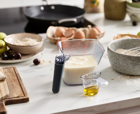There’s no need to bend down to read this large measuring jug as it has an angled design with clear measurements, allowing you to read off the volume from above as you pour.