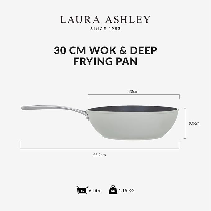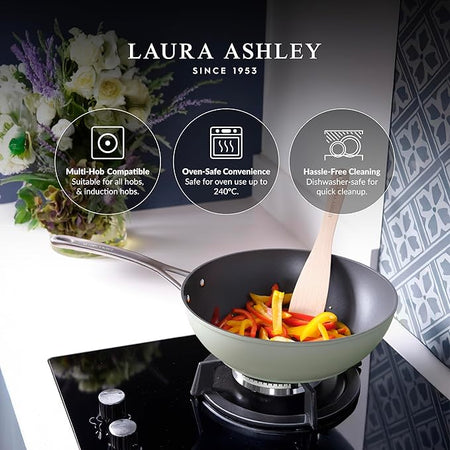 - Elegant Laura Ashley Design: Add sophistication to your kitchen with this wok non stick from the iconic Laura Ashley collection, blending timeless style with outstanding functionality for an elegant cooking experience