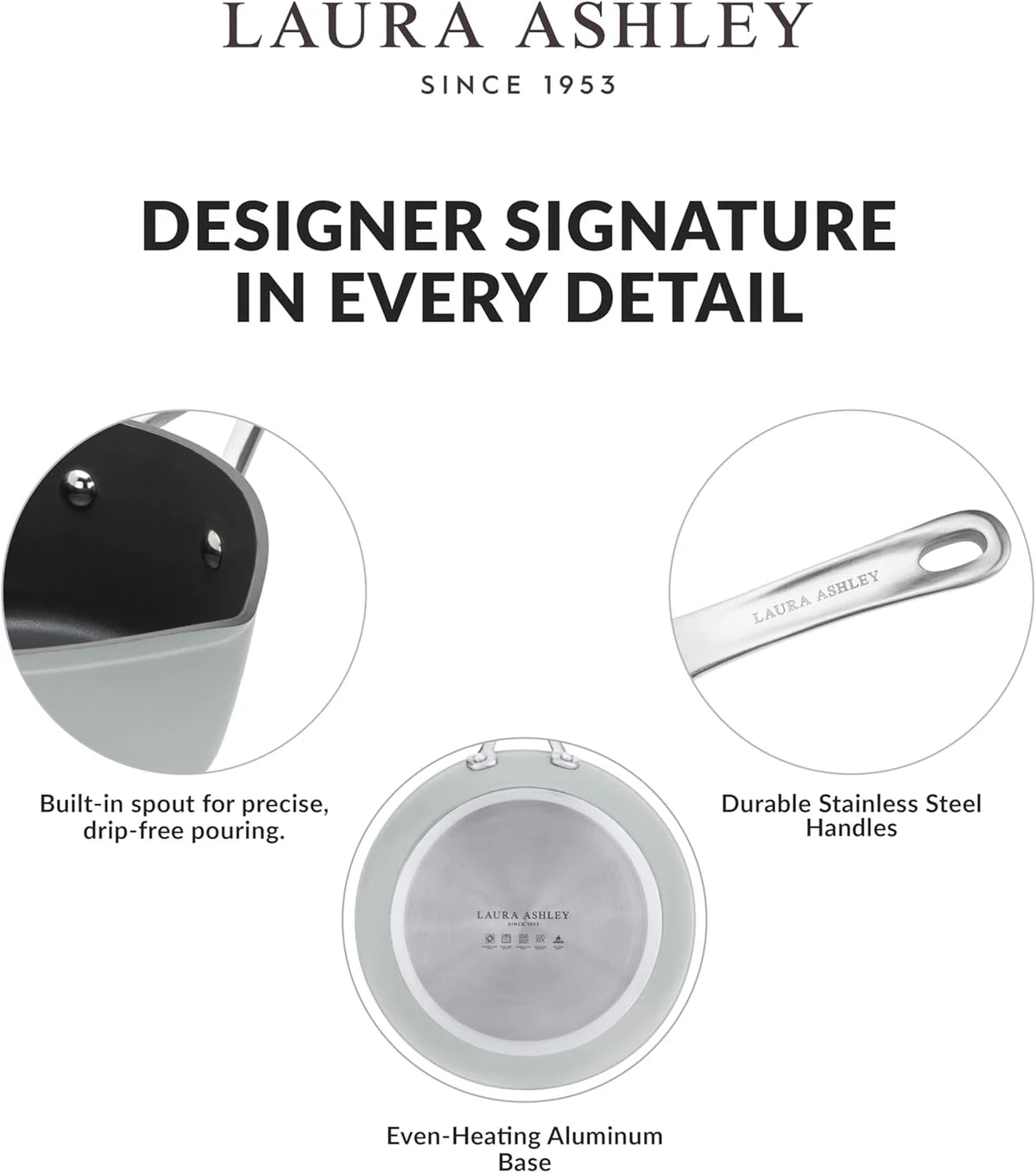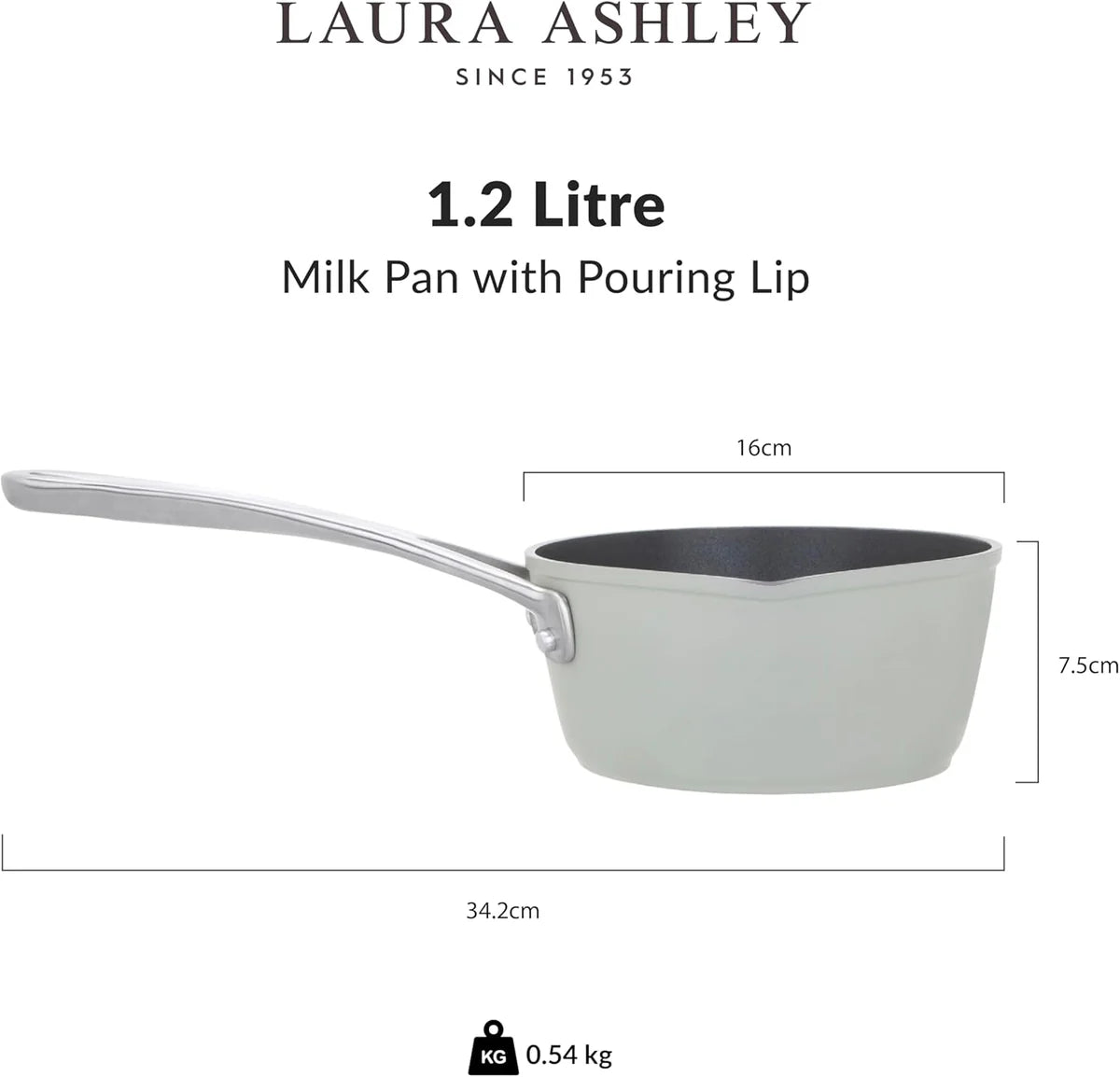 Introducing the Laura Ashley 16cm Induction Milk Pan from Pendeford, perfect for cooking Introducing Pendeford's Laura Ashley 16cm Non Stick Milk Pan, perfect for effortless cooking and preparing meals. Made of forged aluminum, these milk pans ensure fast and even heat distribution, enhancing flavors and reducing cooking time. The 3-layer PFOA-free non-stick coating of this durable professional milk pan with pouring lip ensures easy food release and quick cleaning. Dishwasher safe, the induction hob pot is designed for worry-free maintenance. The milk jug has a built-in pouring spout for mess-free serving. This mini saucepan is ideal for milk, sauces and small portions. Compatible with all hob types, including induction, ceramic, gas and electricity, the non-stick pan is a versatile addition to any cookware. Oven safe up to 240°C, the non-stick pan goes seamlessly from stove to oven for greater flexibility. With a timeless design and reliable performance, this gas induction pot comes with a 10-year warranty for long-lasting quality. Simplify your cooking preparations and highlight the essentials of your induction cookware with this practical and reliable all-fire induction cooktop saucepan.