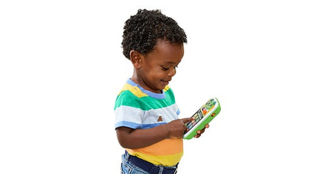 Scout’s Ring & Record Learning Phone is baby’s very own phone, with a voice-recording feature! Press the microphone button to record a message then use the superstar slider to modulate the recorded message! Bright and rainbow themed 10 number buttons introduce numbers 0-9, the alphabet and hello in French and Mandarin. Fun learning songs introduce phone routines, weather concepts and colours. Baby can play pretend and practise babbling by pressing the phone button and hearing Scout say hello and invite baby to play learning games.