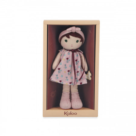 Meet Léonie, a fabric doll decorated with floral patterns, in her 25 & 32 cm format. Suitable for babies from birth, she is part of the Tendresse doll collection by Kaloo. The Léonie doll wears a sublime dress with floral prints, reflecting her grace and simplicity. Matching her headband, her favorite boots are perfect for running in the grass still damp from the morning dew. Léonie is a little doll who embodies freedom and connection to nature. Very soft, she is perfect for little ones to grab and cuddle. We all love her beautiful green eyes and her elegant ribbon around her neck! To take everywhere to live sweet stories as well as the craziest adventures, she is a friend always ready for cuddles. On the back of this brown doll, you will find a sewn ribbon that allows you to write the name of its little owner. Presented in her pretty box, Léonie is an original birth gift and synonymous with tenderness. She is also perfect as a first doll to stimulate the imagination of little ones. The corduroy and the padding that compose her are made from recycled polyester. Machine washable, this charming little doll is ready to be adopted!