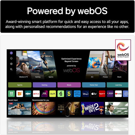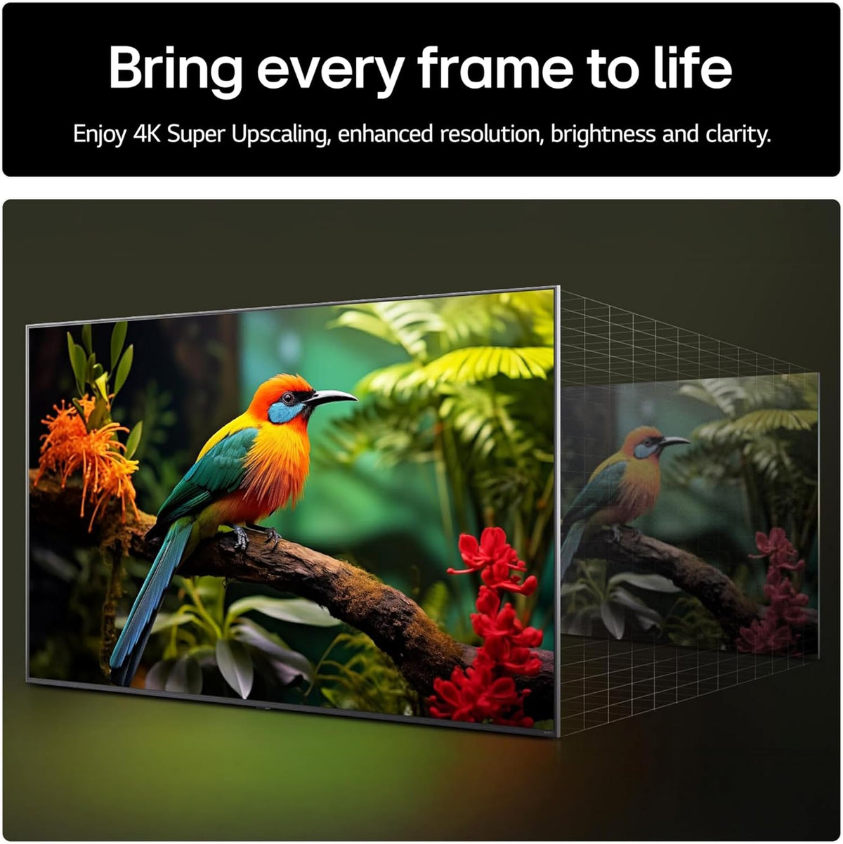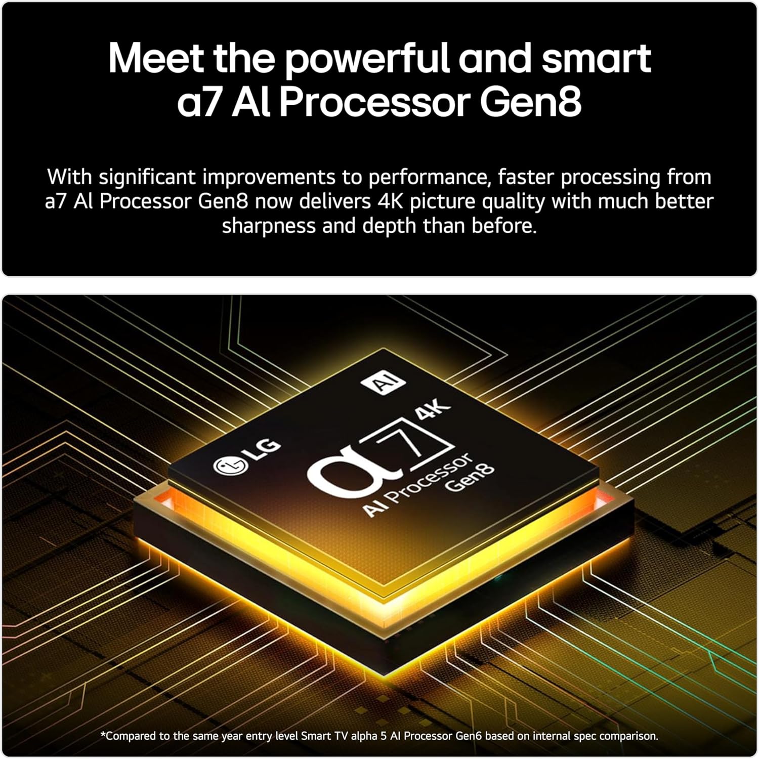 Powered by the α7 AI Processor Gen8 and featuring LG’s smart webOS platform, you’ll enjoy smooth performance, intuitive navigation and a wealth of streaming apps. Whether wall‑mounted or on a stand, it’s a superb choice for living rooms, bedrooms or multi‑room setups.