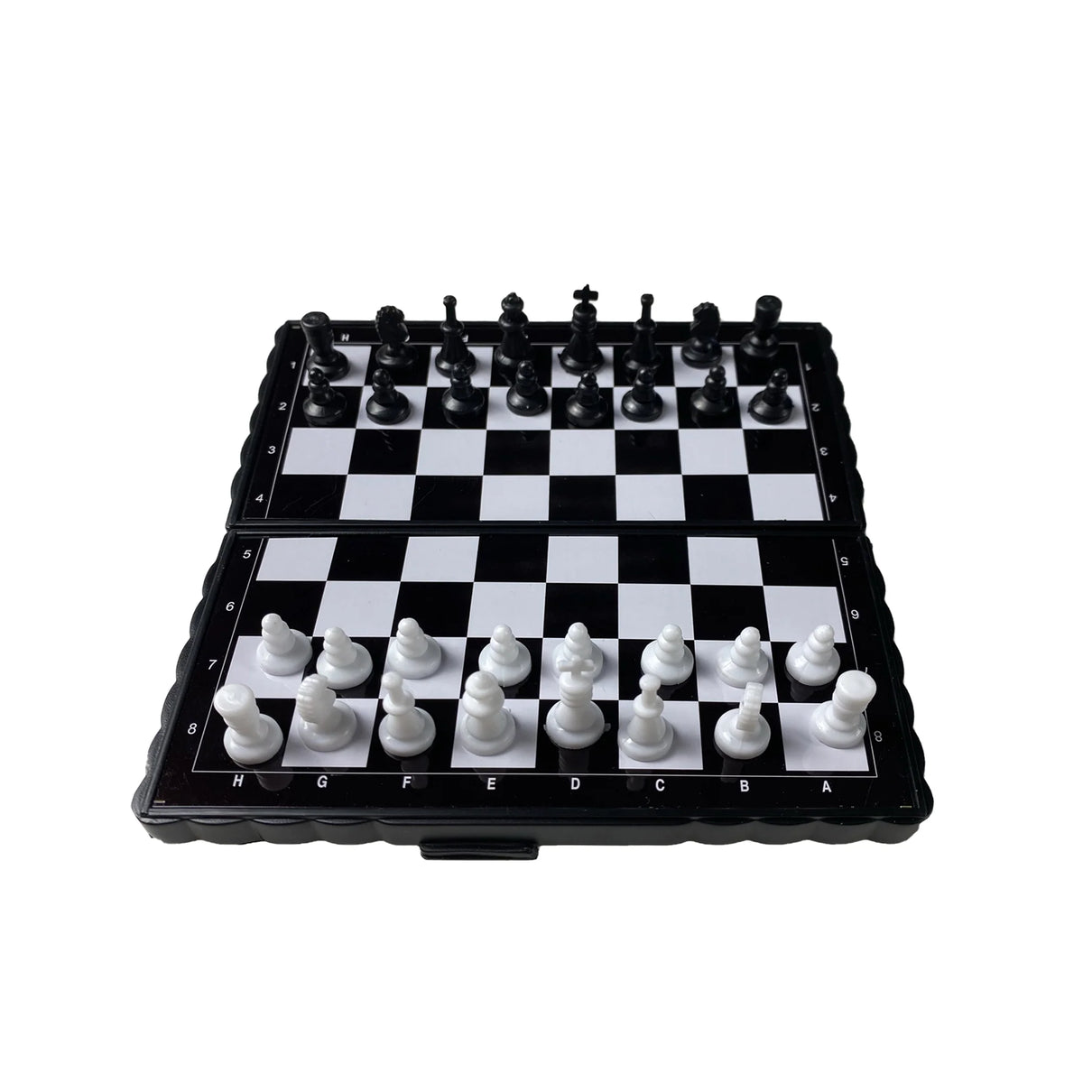 A classic game of Chess with magnetic pieces and foldaway storage board. This Chess game contains 16 white chessmen and 16 black ones. The aim of each player is to checkmate the opponent's king. The king is never captured. When it could be taken at the next move, the king is in check. If it cannot be moved out of check, checkmate is declared. This game is so easy to learn to play in minutes and ideal for travellers as its small enough to take anywhere. This game is for 2 players and suitable for ages 6+.