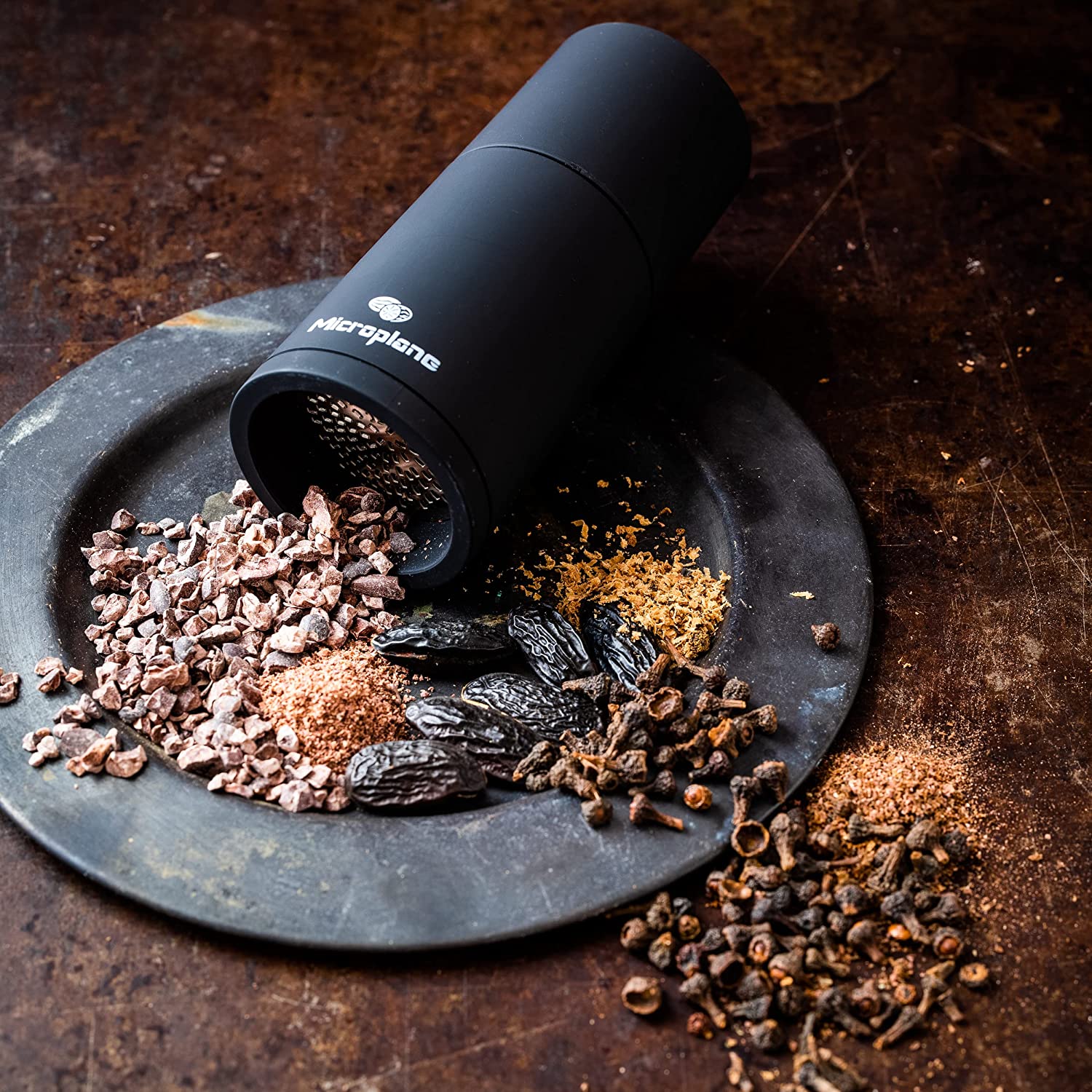 The Microplane Spice Mill grinds hard spices like cinnamon and nutmeg to optimize the flavor of your cooking and baking. Designed for professional chefs and home cooks, our Spice Mill also features storage on the top where you can keep your whole spices! The Spice Mill should be hand washed, and disassembles for easy cleaning.