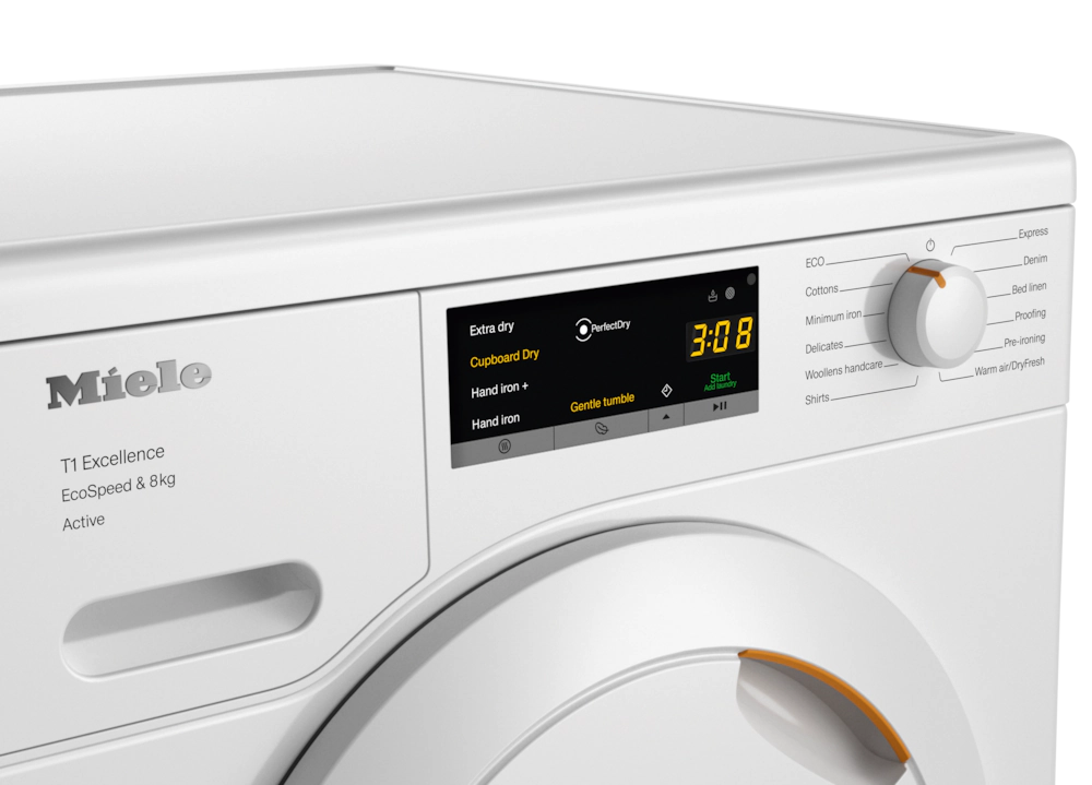 The Miele TEA525WP 8kg Heat Pump Tumble Dryer offers energy-efficient drying with an A+++ rating, saving you money while caring for your laundry. Its innovative EcoDry technology and Honeycomb Drum ensure gentle yet effective drying, while sensor drying and 12 programmes deliver precision for all fabric types. The LED drum light, anti-crease function, and fragrance flacon add convenience and freshness to every load. With a sleek white design, rotary dial, touch controls, and intelligent features like automatic load recognition, this freestanding dryer is perfect for modern homes. The included drain hose and compact design make installation hassle-free.