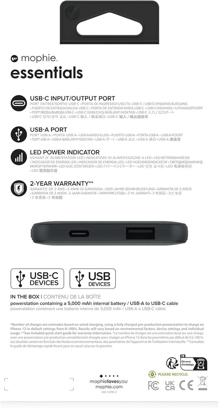 Charge Multiple Devices: Charge up to two devices thanks to the USB-C and USB-A ports.