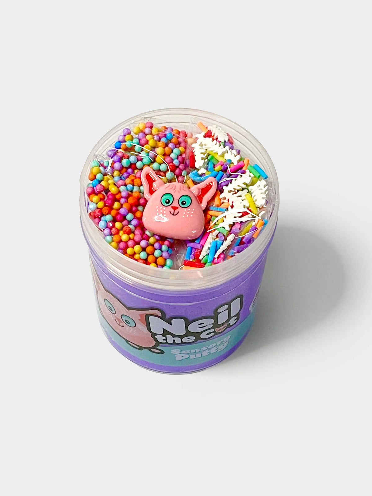 Meet Neil the Cat Sensory Putty - the purr-fect putty for endless sensory fun! This bright purple putty with a unique butterslime texture is sure to delight both kids and adults alike. Gently scented with delightful tutti fruity, Neil the Cat Sensory Putty offers an awesome sensory experience we know you’ll love!