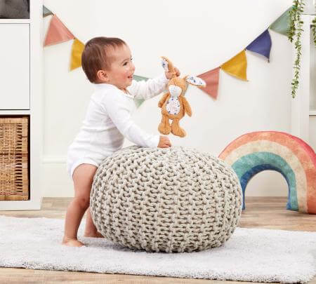 I love you to the moon and back! One of the much-loved characters from the classic children's picture book, Guess How Much I Love You, the Little Nutbrown Hare will make a stylish addition to any nursery, and little ones will love its super soft fabric and velvety tummy and floppy ears. With cute embroidered features, a fluffy tail and an "I Love You motif", the Little Nutbrown Hare is perfect for little ones to cuddle up to at bedtime whilst being read the Guess How Much I Love You stories.