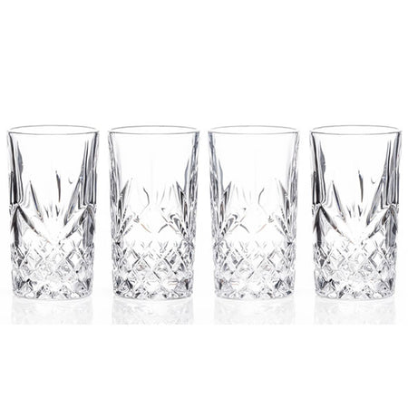 Proudly presenting the Newgrange Living Adare crystal range. This set of 4 Crystal Hiball Glasses makes a truly elegant statement in any home. Enjoy the light catch and highlight our distinctive crystal cuts that makes this highball glass set so special. Size: 350 cc.