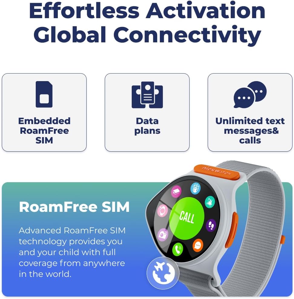 Enhanced Safety & International Coverage: The Nickwatch Smart Watch GPS tracker by Nickelodeon for boys and girls provides real-time location updates, ensuring your child's safety wherever they are, thanks to its wide international coverage; An SOS/Emergency Call function adds an extra layer of safety