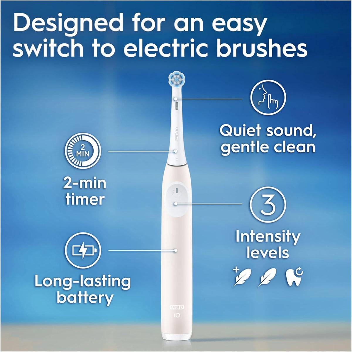 "The iO2 electric toothbrush combines gentle micro-vibrations with a unique dentist-inspired round brush head for a purifying feel of a professional clean.