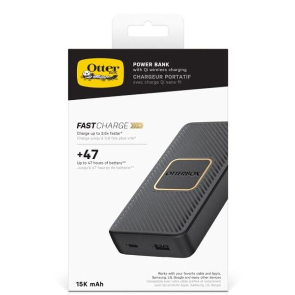 OtterBox Fast Charge portable wireless charger is engineered to charge and empower your day. Battery capacities range in size to give you more hours of battery power. USB-A and Fast Charge USB-C ports allow for multi-device charging and secure wireless charging through 10W Qi Wireless output.