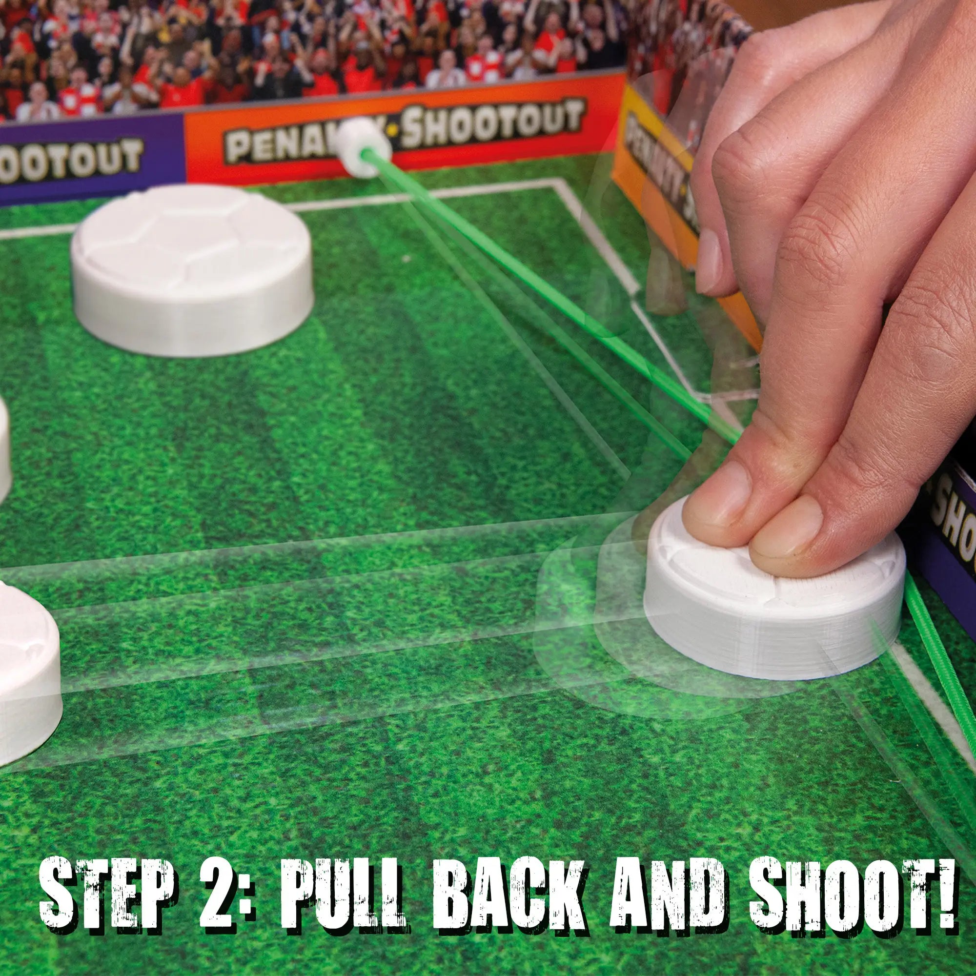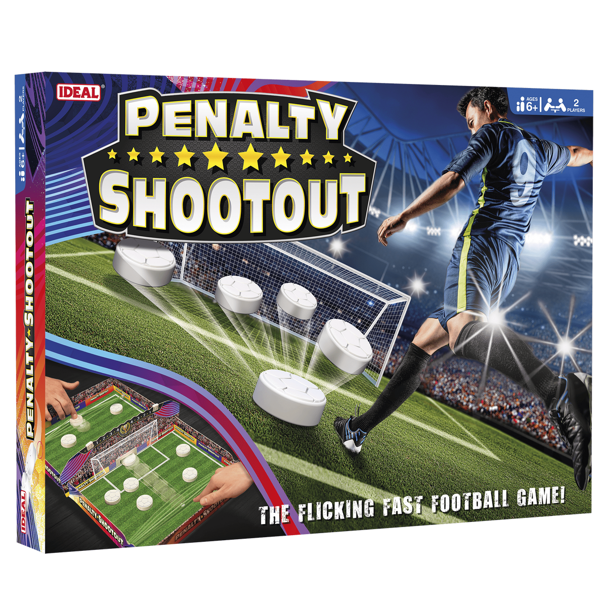 Penalty Shoot Out is the fast-fingered, addictive head to head, goal scoring game. Using the clever box which folds out to become your pitch, each player positions their pucks on their side of the half way line. When kickoff starts, who can flick all the pucks in their half through the goal into their opponent’s half? Sounds easy, but not when your opponent is flicking back just as fast!
