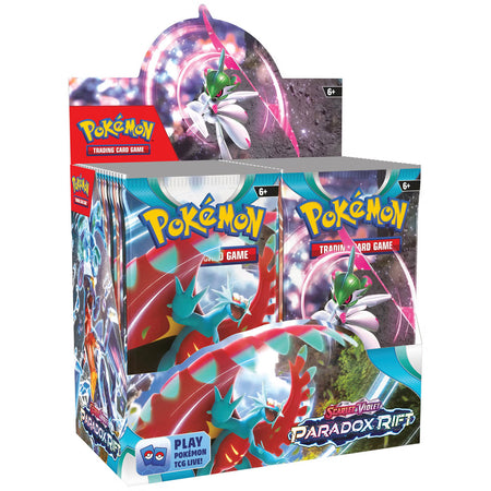 Dive into the clouds and explore a land that appears to be unbound by time! With ferocious attacks, Ancient Pokémon like Roaring Moon ex and Sandy Shocks ex appear alongside artificial Future Pokémon like Iron Valiant ex and Iron Hands ex. Meanwhile, Garchomp ex, Mewtwo ex, and others Terastallize to gain new types, as Armarouge ex, Gholdengo ex, and more Pokémon ex join the fray. Adventure awaits as timelines collide in the Pokémon TCG: Scarlet & Violet—Paradox Rift expansion!